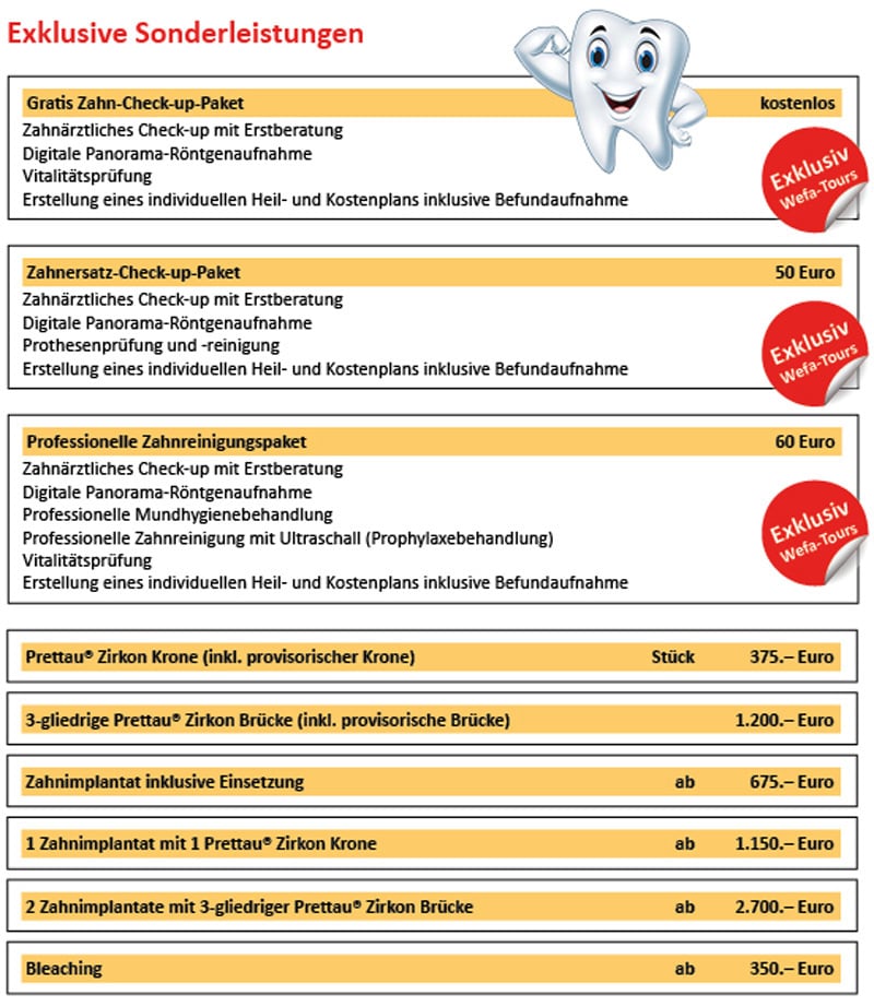 Fragen zu Ihrer persönlichen Zahnbehandlung werden ausschliesslich und absolut vertraulich direkt durch das Personal unserer Partner in der Zahnklinik, für Sie kostenfrei